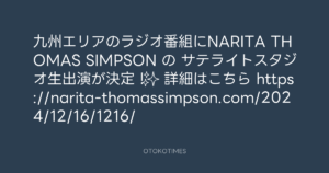 東京レコード @tokyo_records – 13:32・2024年12月16日 2024 12/16 2024-12-16 九州エリアのラジオ番組にNARITA THOMAS SIMPSON の サテライトスタジオ生出演が決定!📻✨ 詳細はこちら👇 https://narita-thomassimpson.com/2024/12/16/1216/ Source:https://x.com/tokyo_records/status/186851455402... text X Post この記事が気に入ったら フォローしてね! Follow @OtokoTimes1988 よかったらシェアしてね! URLをコピーしました! Kazuya Takahashi @hankykazy - 11:53・2024年12月16日(IG post) 東京レコード @tokyo_records - 14:32・2024年12月16日