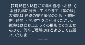終演後は立ち止まっての撮影はできませんので、何卒ご理解のほどよろしくお願いいたします。