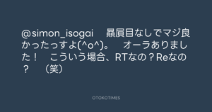 @simon_isogai  贔屓目なしでマジ良かったっすよ(^o^)。 オーラありました! こういう場合、RTなの?Reなの? (笑)