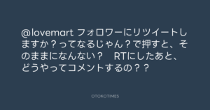 寺岡呼人 @yohito_teraoka – 11:03・2010年3月14日 2010 3/14 寺岡呼人 2010-03-14 @lovemart フォロワーにリツイートしますか?ってなるじゃん?で押すと、そのままになんない? RTにしたあと、どうやってコメントするの?? Source:https://x.com/yohito_teraoka/status/10449186028 text X Post 寺岡呼人 寺岡呼人 この記事が気に入ったら フォローしてね! Follow @OtokoTimes1988 よかったらシェアしてね! URLをコピーしました! 寺岡呼人 @yohito_teraoka - 10:25・2010年3月14日 寺岡呼人 @yohito_teraoka - 12:32・2010年3月14日 関連記事 Artist 寺岡呼人 1968.02.07