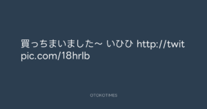 寺岡呼人 @yohito_teraoka – 14:47・2010年3月14日 2010 3/14 寺岡呼人 2010-03-14 買っちまいました〜 いひひ http://twitpic.com/18hrlb Source:https://x.com/yohito_teraoka/status/10457923382 text X Post 寺岡呼人 寺岡呼人 この記事が気に入ったら フォローしてね! Follow @OtokoTimes1988 よかったらシェアしてね! URLをコピーしました! 寺岡呼人 @yohito_teraoka - 12:58・2010年3月14日 寺岡呼人 @yohito_teraoka - 14:52・2010年3月14日 関連記事 Artist 寺岡呼人 1968.02.07
