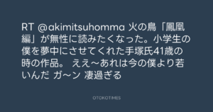 寺岡呼人 @yohito_teraoka – 8:34・2010年3月16日 2010 3/16 寺岡呼人 2010-03-16 RT @akimitsuhomma 火の鳥「鳳凰編」が無性に読みたくなった。小学生の僕を夢中にさせてくれた手塚氏41歳の時の作品。 ええ〜あれは今の僕より若いんだ ガ〜ン 凄過ぎる Source:https://x.com/yohito_teraoka/status/10540872157 text X Post 寺岡呼人 寺岡呼人 この記事が気に入ったら フォローしてね! Follow @OtokoTimes1988 よかったらシェアしてね! URLをコピーしました! 寺岡呼人 @yohito_teraoka - 1:26・2010年3月16日 寺岡呼人 @yohito_teraoka - 11:57・2010年3月16日 関連記事 Artist 寺岡呼人 1968.02.07