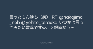 言ったもん勝ち(笑) RT @nakajima_nob @yohito_teraoka いつかは言ってみたい言葉ですw。>銀座なう〜