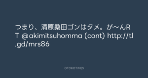 寺岡呼人 @yohito_teraoka – 15:36・2010年4月1日 2010 4/01 寺岡呼人 2010-04-01 つまり、清原桑田ゴンはタメ。が~んRT @akimitsuhomma (cont) http://tl.gd/mrs86 Source:https://x.com/yohito_teraoka/status/11411405347 text X Post 寺岡呼人 寺岡呼人 この記事が気に入ったら フォローしてね! Follow @OtokoTimes1988 よかったらシェアしてね! URLをコピーしました! 寺岡呼人 @yohito_teraoka - 13:13・2010年4月1日 寺岡呼人 @yohito_teraoka - 15:39・2010年4月1日 関連記事 Artist 寺岡呼人 1968.02.07