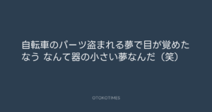 自転車のパーツ盗まれる夢で目が覚めたなう なんて器の小さい夢なんだ(笑)