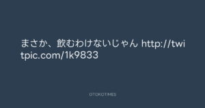 寺岡呼人 @yohito_teraoka – 17:48・2010年5月2日 2010 5/02 寺岡呼人 2010-05-02 まさか、飲むわけないじゃん http://twitpic.com/1k9833 Source:https://x.com/yohito_teraoka/status/13236590906 text X Post 寺岡呼人 寺岡呼人 この記事が気に入ったら フォローしてね! Follow @OtokoTimes1988 よかったらシェアしてね! URLをコピーしました! 寺岡呼人 @yohito_teraoka - 17:46・2010年5月2日 寺岡呼人 @yohito_teraoka - 20:39・2010年5月2日 関連記事 Artist 寺岡呼人 1968.02.07