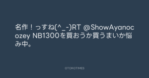 寺岡呼人 @yohito_teraoka – 20:25・2010年5月11日 2010 5/11 寺岡呼人 2010-05-11 名作!っすね(^_-)RT @ShowAyanocozey NB1300を買おうか買うまいか悩み中。 Source:https://x.com/yohito_teraoka/status/13783150288 text X Post 寺岡呼人 寺岡呼人 この記事が気に入ったら フォローしてね! Follow @OtokoTimes1988 よかったらシェアしてね! URLをコピーしました! 寺岡呼人 @yohito_teraoka - 20:00・2010年5月11日 寺岡呼人 @yohito_teraoka - 20:47・2010年5月11日 関連記事 Artist 寺岡呼人 1968.02.07
