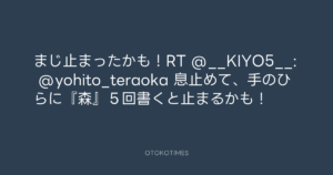 まじ止まったかも!RT @__KIYO5__: @yohito_teraoka 息止めて、手のひらに『森』5回書くと止まるかも!