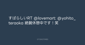 すばらしいRT @lovemart: @yohito_teraoka 絶賛休憩中です!笑