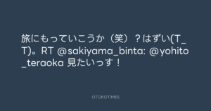 寺岡呼人 @yohito_teraoka – 17:15・2010年5月25日 2010 5/25 寺岡呼人 2010-05-25 旅にもっていこうか(笑)?はずい(T_T)。RT @sakiyama_binta: @yohito_teraoka 見たいっす! Source:https://x.com/yohito_teraoka/status/14679793118 text X Post 寺岡呼人 寺岡呼人 この記事が気に入ったら フォローしてね! Follow @OtokoTimes1988 よかったらシェアしてね! URLをコピーしました! 寺岡呼人 @yohito_teraoka - 17:01・2010年5月25日 寺岡呼人 @yohito_teraoka - 17:32・2010年5月25日 関連記事 Artist 寺岡呼人 1968.02.07