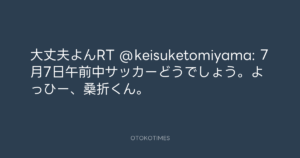 寺岡呼人 @yohito_teraoka – 17:08・2010年5月26日 2010 5/26 寺岡呼人 2010-05-26 大丈夫よんRT @keisuketomiyama: 7月7日午前中サッカーどうでしょう。よっひー、桑折くん。 Source:https://x.com/yohito_teraoka/status/14749669843 text X Post 寺岡呼人 寺岡呼人 この記事が気に入ったら フォローしてね! Follow @OtokoTimes1988 よかったらシェアしてね! URLをコピーしました! 寺岡呼人 @yohito_teraoka - 16:47・2010年5月26日 寺岡呼人 @yohito_teraoka - 17:25・2010年5月26日 関連記事 Artist 寺岡呼人 1968.02.07