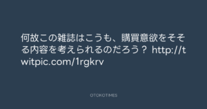 寺岡呼人 @yohito_teraoka – 16:08・2010年5月27日 2010 5/27 寺岡呼人 2010-05-27 何故この雑誌はこうも、購買意欲をそそる内容を考えられるのだろう? http://twitpic.com/1rgkrv Source:https://x.com/yohito_teraoka/status/14818903192 text X Post 寺岡呼人 寺岡呼人 この記事が気に入ったら フォローしてね! Follow @OtokoTimes1988 よかったらシェアしてね! URLをコピーしました! 寺岡呼人 @yohito_teraoka - 13:50・2010年5月27日 寺岡呼人 @yohito_teraoka - 16:13・2010年5月27日 関連記事 Artist 寺岡呼人 1968.02.07