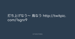 寺岡呼人 @yohito_teraoka – 21:54・2010年5月30日 2010 5/30 寺岡呼人 2010-05-30 打ち上げなう〜 鳥なう http://twitpic.com/1sgnr9 Source:https://x.com/yohito_teraoka/status/15039283069 text X Post 寺岡呼人 寺岡呼人 この記事が気に入ったら フォローしてね! Follow @OtokoTimes1988 よかったらシェアしてね! URLをコピーしました! 寺岡呼人 @yohito_teraoka - 16:32・2010年5月30日 寺岡呼人 @yohito_teraoka - 22:34・2010年5月30日 関連記事 Artist 寺岡呼人 1968.02.07