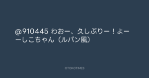 @910445 わおー、久しぶりー!よーーしこちゃん(ルパン風)