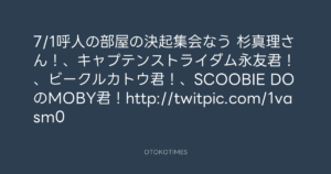 寺岡呼人 @yohito_teraoka – 0:39・2010年6月10日 2010 6/10 寺岡呼人 2010-06-10 7/1呼人の部屋の決起集会なう 杉真理さん!、キャプテンストライダム永友君!、ビークルカトウ君!、SCOOBIE DOのMOBY君!http://twitpic.com/1vasm0 Source:https://x.com/yohito_teraoka/status/15787202881 text X Post 寺岡呼人 寺岡呼人 この記事が気に入ったら フォローしてね! Follow @OtokoTimes1988 よかったらシェアしてね! URLをコピーしました! 寺岡呼人 @yohito_teraoka - 0:27・2010年6月10日 寺岡呼人 @yohito_teraoka - 0:58・2010年6月10日 関連記事 Artist 寺岡呼人 1968.02.07