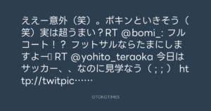 ええー意外(笑)。ポキンといきそう(笑)実は超うまい?RT @bomi_: フルコート!? フットサルならたまにしますよー♡ RT @yohito_teraoka 今日はサッカー、、なのに見学なう( ; ; ) http://twitpic.com/2331na
