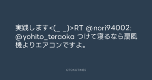 実践します<(_ _)>RT @nori94002: @yohito_teraoka つけて寝るなら扇風機よりエアコンですよ。
