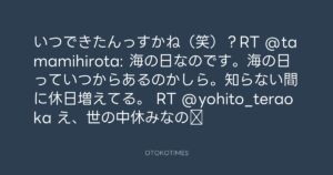 寺岡呼人 @yohito_teraoka – 1:07・2010年7月20日 2010 7/20 寺岡呼人 2010-07-20 いつできたんっすかね(笑)?RT @tamamihirota: 海の日なのです。海の日っていつからあるのかしら。知らない間に休日増えてる。 RT @yohito_teraoka え、世の中休みなの⁉ Source:https://x.com/yohito_teraoka/status/18926706802 text X Post 寺岡呼人 寺岡呼人 この記事が気に入ったら フォローしてね! Follow @OtokoTimes1988 よかったらシェアしてね! URLをコピーしました! 寺岡呼人 @yohito_teraoka - 1:00・2010年7月20日 寺岡呼人 @yohito_teraoka - 1:19・2010年7月20日 関連記事 Artist 寺岡呼人 1968.02.07