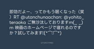 寺岡呼人 @yohito_teraoka – 2:29・2010年8月2日 2010 8/02 寺岡呼人 2010-08-02 即効だよー、ってかもう眠くなった(笑)RT @utanchunaachan: @yohito_teraoka ご無沙汰しておりますm(_ _)m 映画のホームページで寝れるのですか?試してみます♪(*⌒▽⌒*) Source:https://x.com/yohito_teraoka/status/20076462925 text X Post 寺岡呼人 寺岡呼人 この記事が気に入ったら フォローしてね! Follow @OtokoTimes1988 よかったらシェアしてね! URLをコピーしました! 寺岡呼人 @yohito_teraoka - 2:14・2010年8月2日 寺岡呼人 @yohito_teraoka - 13:47・2010年8月2日 関連記事 Artist 寺岡呼人 1968.02.07