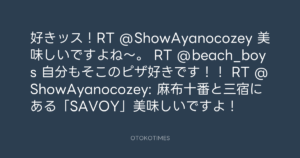 寺岡呼人 @yohito_teraoka – 19:11・2010年8月3日 2010 8/03 寺岡呼人 2010-08-03 好きッス!RT @ShowAyanocozey 美味しいですよね〜。 RT @beach_boys 自分もそこのピザ好きです!! RT @ShowAyanocozey: 麻布十番と三宿にある「SAVOY」美味しいですよ! Source:https://x.com/yohito_teraoka/status/20211062759 text X Post 寺岡呼人 寺岡呼人 この記事が気に入ったら フォローしてね! Follow @OtokoTimes1988 よかったらシェアしてね! URLをコピーしました! 寺岡呼人 @yohito_teraoka - 12:32・2010年8月3日 寺岡呼人 @yohito_teraoka - 19:15・2010年8月3日 関連記事 Artist 寺岡呼人 1968.02.07
