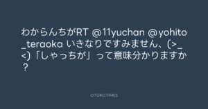 わからんちがRT @11yuchan @yohito_teraoka いきなりですみません、(>_<)「しゃっちが」って意味分かりますか?