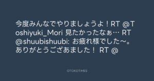 寺岡呼人 @yohito_teraoka – 14:39・2010年8月11日 2010 8/11 寺岡呼人 2010-08-11 今度みんなでやりましょうよ!RT @Toshiyuki_Mori 見たかったなぁ… RT @shuubishuubi: お疲れ様でした~。ありがとうござあました! RT @ Source:https://x.com/yohito_teraoka/status/20860844462 text X Post 寺岡呼人 寺岡呼人 この記事が気に入ったら フォローしてね! Follow @OtokoTimes1988 よかったらシェアしてね! URLをコピーしました! 寺岡呼人 @yohito_teraoka - 1:48・2010年8月11日 寺岡呼人 @yohito_teraoka - 15:17・2010年8月11日 関連記事 Artist 寺岡呼人 1968.02.07