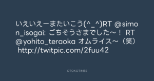 いえいえーまたいこう(^_^)RT @simon_isogai: ごちそうさまでした〜! RT @yohito_teraoka オムライス〜(笑) http://twitpic.com/2fuu42