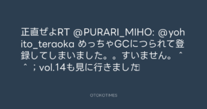 正直ぜよRT @PURARI_MIHO: @yohito_teraoka めっちゃGCにつられて登録してしまいました。。すいません。^^;vol.14も見に行きました☆