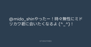 寺岡呼人 @yohito_teraoka – 9:53・2010年9月2日 2010 9/02 寺岡呼人 2010-09-02 @mido_shinやったー!時々無性にミドリカワ君に会いたくなるよ (^_^)! Source:https://x.com/yohito_teraoka/status/22756423180 text X Post 寺岡呼人 寺岡呼人 この記事が気に入ったら フォローしてね! Follow @OtokoTimes1988 よかったらシェアしてね! URLをコピーしました! 寺岡呼人 @yohito_teraoka - 9:34・2010年9月2日 寺岡呼人 @yohito_teraoka - 17:09・2010年9月2日 関連記事 Artist 寺岡呼人 1968.02.07