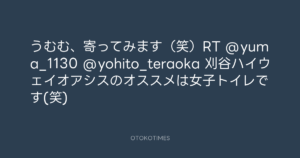 うむむ、寄ってみます(笑)RT @yuma_1130 @yohito_teraoka 刈谷ハイウェイオアシスのオススメは女子トイレです(笑)