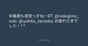 寺岡呼人 @yohito_teraoka – 2:09・2010年9月8日 2010 9/08 寺岡呼人 2010-09-08 中島君も夜型っすねーRT @nakajima_nob: @yohito_teraoka お疲れさまでした!^^ Source:https://x.com/yohito_teraoka/status/23254960374 text X Post 寺岡呼人 寺岡呼人 この記事が気に入ったら フォローしてね! Follow @OtokoTimes1988 よかったらシェアしてね! URLをコピーしました! 寺岡呼人 @yohito_teraoka - 2:07・2010年9月8日 寺岡呼人 @yohito_teraoka - 3:07・2010年9月8日 関連記事 Artist 寺岡呼人 1968.02.07
