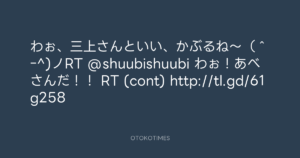 寺岡呼人 @yohito_teraoka – 14:56・2010年9月14日 2010 9/14 寺岡呼人 2010-09-14 わぉ、三上さんといい、かぶるね〜(^ー^)ノRT @shuubishuubi わぉ!あべさんだ!! RT (cont) http://tl.gd/61g258 Source:https://x.com/yohito_teraoka/status/24452334298 text X Post 寺岡呼人 寺岡呼人 この記事が気に入ったら フォローしてね! Follow @OtokoTimes1988 よかったらシェアしてね! URLをコピーしました! 寺岡呼人 @yohito_teraoka - 12:02・2010年9月14日 寺岡呼人 @yohito_teraoka - 19:57・2010年9月14日 関連記事 Artist 寺岡呼人 1968.02.07