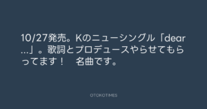 寺岡呼人 @yohito_teraoka – 23:11・2010年9月18日 2010 9/18 寺岡呼人 2010-09-18 10/27発売。Kのニューシングル「dear…」。歌詞とプロデュースやらせてもらってます! 名曲です。 Source:https://x.com/yohito_teraoka/status/24851010923 text X Post 寺岡呼人 寺岡呼人 この記事が気に入ったら フォローしてね! Follow @OtokoTimes1988 よかったらシェアしてね! URLをコピーしました! 寺岡呼人 @yohito_teraoka - 23:07・2010年9月18日 寺岡呼人 @yohito_teraoka - 23:11・2010年9月18日 関連記事 Artist 寺岡呼人 1968.02.07
