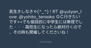 寺岡呼人 @yohito_teraoka – 23:41・2010年9月18日 2010 9/18 寺岡呼人 2010-09-18 長生きしなきゃ(^_^)!RT @yutyan_love: @yohito_teraoka GC行きたいです><でも値段的に中学生には無理でした・・・高校生になったら絶対行くので、その時も開催してくださいね! Source:https://x.com/yohito_teraoka/status/24853296473 text X Post 寺岡呼人 寺岡呼人 この記事が気に入ったら フォローしてね! Follow @OtokoTimes1988 よかったらシェアしてね! URLをコピーしました! 寺岡呼人 @yohito_teraoka - 23:40・2010年9月18日 寺岡呼人 @yohito_teraoka - 23:43・2010年9月18日 関連記事 Artist 寺岡呼人 1968.02.07