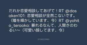 寺岡呼人 @yohito_teraoka – 0:32・2010年9月19日 2010 9/19 寺岡呼人 2010-09-19 だれか恋愛相談してあげて!RT @dosaken101: 恋愛相談が全然こないです。(瞳を輝かしています、今)RT @yohito_teraoka: 暴れるなんて、人聞きのわるい~(可愛い顔してます、今) Source:https://x.com/yohito_teraoka/status/24857415431 text X Post 寺岡呼人 寺岡呼人 この記事が気に入ったら フォローしてね! Follow @OtokoTimes1988 よかったらシェアしてね! URLをコピーしました! 寺岡呼人 @yohito_teraoka - 0:26・2010年9月19日 寺岡呼人 @yohito_teraoka - 0:36・2010年9月19日 関連記事 Artist 寺岡呼人 1968.02.07