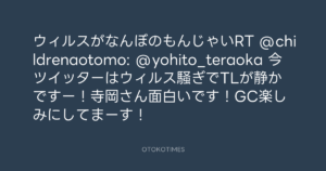 寺岡呼人 @yohito_teraoka – 23:03・2010年9月21日 2010 9/21 寺岡呼人 2010-09-21 ウィルスがなんぼのもんじゃいRT @childrenaotomo: @yohito_teraoka 今ツイッターはウィルス騒ぎでTLが静かですー!寺岡さん面白いです!GC楽しみにしてまーす! Source:https://x.com/yohito_teraoka/status/25121235275 text X Post 寺岡呼人 寺岡呼人 この記事が気に入ったら フォローしてね! Follow @OtokoTimes1988 よかったらシェアしてね! URLをコピーしました! 寺岡呼人 @yohito_teraoka - 23:01・2010年9月21日 寺岡呼人 @yohito_teraoka - 23:04・2010年9月21日 関連記事 Artist 寺岡呼人 1968.02.07