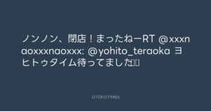 寺岡呼人 @yohito_teraoka – 23:05・2010年9月21日 2010 9/21 寺岡呼人 2010-09-21 ノンノン、閉店!まったねーRT @xxxnaoxxxnaoxxx: @yohito_teraoka ヨヒトゥタイム待ってました♪♪ Source:https://x.com/yohito_teraoka/status/25121421587 text X Post 寺岡呼人 寺岡呼人 この記事が気に入ったら フォローしてね! Follow @OtokoTimes1988 よかったらシェアしてね! URLをコピーしました! 寺岡呼人 @yohito_teraoka - 23:04・2010年9月21日 寺岡呼人 @yohito_teraoka - 23:08・2010年9月21日 関連記事 Artist 寺岡呼人 1968.02.07