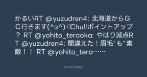 かるいRT @yuzudren4: 北海道からGC行きます(^з^)-☆Chu!!ポイントアップ? RT @yohito_teraoka: やはり減点RT @yuzudren4: 間違えた!眉毛“も”素敵!! RT @yohito_teraoka: あ、新しい!よし、お前中心RT