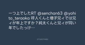 寺岡呼人 @yohito_teraoka – 14:31・2010年9月25日 2010 9/25 寺岡呼人 2010-09-25 一つ上でしたRT @senchan63 @yohito_teraoka 呼人くんと増子兄ィでは兄ィが年上ですか?純太くんと兄ィが同い年でしたっけ… Source:https://x.com/yohito_teraoka/status/25473943837 text X Post 寺岡呼人 寺岡呼人 この記事が気に入ったら フォローしてね! Follow @OtokoTimes1988 よかったらシェアしてね! URLをコピーしました! 寺岡呼人 @yohito_teraoka - 14:19・2010年9月25日 寺岡呼人 @yohito_teraoka - 18:35・2010年9月25日 関連記事 Artist 寺岡呼人 1968.02.07