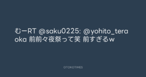 寺岡呼人 @yohito_teraoka – 1:41・2010年9月27日 2010 9/27 寺岡呼人 2010-09-27 むーRT @saku0225: @yohito_teraoka 前前々夜祭って笑 前すぎるw Source:https://x.com/yohito_teraoka/status/25605364872 text X Post 寺岡呼人 寺岡呼人 この記事が気に入ったら フォローしてね! Follow @OtokoTimes1988 よかったらシェアしてね! URLをコピーしました! 寺岡呼人 @yohito_teraoka - 1:16・2010年9月27日 寺岡呼人 @yohito_teraoka - 2:01・2010年9月27日 関連記事 Artist 寺岡呼人 1968.02.07