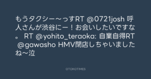 寺岡呼人 @yohito_teraoka – 1:10・2010年9月28日 2010 9/28 寺岡呼人 2010-09-28 もうタクシー〜っすRT @0721josh 呼人さんが渋谷にー!お会いしたいですな。 RT @yohito_teraoka: 自業自得RT @gawasho HMV閉店しちゃいましたね~泣 Source:https://x.com/yohito_teraoka/status/25700120245 text X Post 寺岡呼人 寺岡呼人 この記事が気に入ったら フォローしてね! Follow @OtokoTimes1988 よかったらシェアしてね! URLをコピーしました! 寺岡呼人 @yohito_teraoka - 1:05・2010年9月28日 寺岡呼人 @yohito_teraoka - 1:14・2010年9月28日 関連記事 Artist 寺岡呼人 1968.02.07
