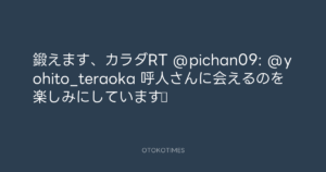 鍛えます、カラダRT @pichan09: @yohito_teraoka 呼人さんに会えるのを楽しみにしています♪