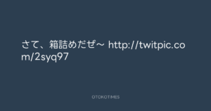 寺岡呼人 @yohito_teraoka – 12:47・2010年9月29日 2010 9/29 寺岡呼人 2010-09-29 さて、箱詰めだぜ〜 http://twitpic.com/2syq97 Source:https://x.com/yohito_teraoka/status/25851019784 text X Post 寺岡呼人 寺岡呼人 この記事が気に入ったら フォローしてね! Follow @OtokoTimes1988 よかったらシェアしてね! URLをコピーしました! 寺岡呼人 @yohito_teraoka - 12:24・2010年9月29日 寺岡呼人 @yohito_teraoka - 13:11・2010年9月29日 関連記事 Artist 寺岡呼人 1968.02.07