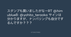 寺岡呼人 @yohito_teraoka – 14:13・2010年9月29日 2010 9/29 寺岡呼人 2010-09-29 スタンプも買いましたがなーRT @himublue8: @yohito_teraoka サインは分かりますが、ナンバリングも自分でするんですか??? Source:https://x.com/yohito_teraoka/status/25856196228 text X Post 寺岡呼人 寺岡呼人 この記事が気に入ったら フォローしてね! Follow @OtokoTimes1988 よかったらシェアしてね! URLをコピーしました! 寺岡呼人 @yohito_teraoka - 14:12・2010年9月29日 寺岡呼人 @yohito_teraoka - 21:00・2010年9月29日 関連記事 Artist 寺岡呼人 1968.02.07