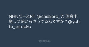 寺岡呼人 @yohito_teraoka – 11:51・2010年9月30日 2010 9/30 寺岡呼人 2010-09-30 NHKだーよRT @chiekoro_7: 国会中継って朝からやってるんですか?@yohito_teraoka Source:https://x.com/yohito_teraoka/status/25943439547 text X Post 寺岡呼人 寺岡呼人 この記事が気に入ったら フォローしてね! Follow @OtokoTimes1988 よかったらシェアしてね! URLをコピーしました! 寺岡呼人 @yohito_teraoka - 11:38・2010年9月30日 寺岡呼人 @yohito_teraoka - 13:06・2010年9月30日 関連記事 Artist 寺岡呼人 1968.02.07