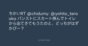 ちかいRT @chidumy: @yohito_teraoka パンストにスカート挟んでトイレから出てきてもうたのと、どっちがはずかぴー?