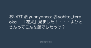 おいRT @yunnyanco: @yohito_teraoka  「花火」見ました!・・・よひとさんってこんな顔でしたっけ?