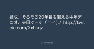 寺岡呼人 @yohito_teraoka – 18:32・2010年10月14日 2010 10/14 寺岡呼人 2010-10-14 結成、そろそろ20年目を迎える中年デュオ、寺田でーす(^ー^)ノ http://twitpic.com/2xhkqz Source:https://x.com/yohito_teraoka/status/27325342549 text X Post 寺岡呼人 寺岡呼人 この記事が気に入ったら フォローしてね! Follow @OtokoTimes1988 よかったらシェアしてね! URLをコピーしました! 寺岡呼人 @yohito_teraoka - 17:19・2010年10月14日 寺岡呼人 @yohito_teraoka - 21:49・2010年10月14日 関連記事 Artist 寺岡呼人 1968.02.07