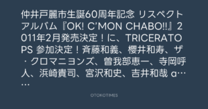 仲井戸麗市生誕60周年記念 リスペクトアルバム『OK! C’MON CHABO!!』2011年2月発売決定!に、TRICERATOPS 参加決定!斉藤和義、櫻井和寿、ザ・クロマニヨンズ、曽我部恵一、寺岡呼人、浜崎貴司、宮沢和史、吉井和哉 and more! 凄いことになってきた!