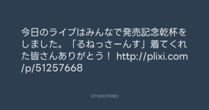 寺岡呼人 @yohito_teraoka – 0:18・2010年10月18日 2010 10/18 寺岡呼人 2010-10-18 今日のライブはみんなで発売記念乾杯をしました。「るねっさーんす」着てくれた皆さんありがとう! http://plixi.com/p/51257668 Source:https://x.com/yohito_teraoka/status/27646140921 text X Post 寺岡呼人 寺岡呼人 この記事が気に入ったら フォローしてね! Follow @OtokoTimes1988 よかったらシェアしてね! URLをコピーしました! 寺岡呼人 @yohito_teraoka - 0:13・2010年10月18日 寺岡呼人 @yohito_teraoka - 0:21・2010年10月18日 関連記事 Artist 寺岡呼人 1968.02.07